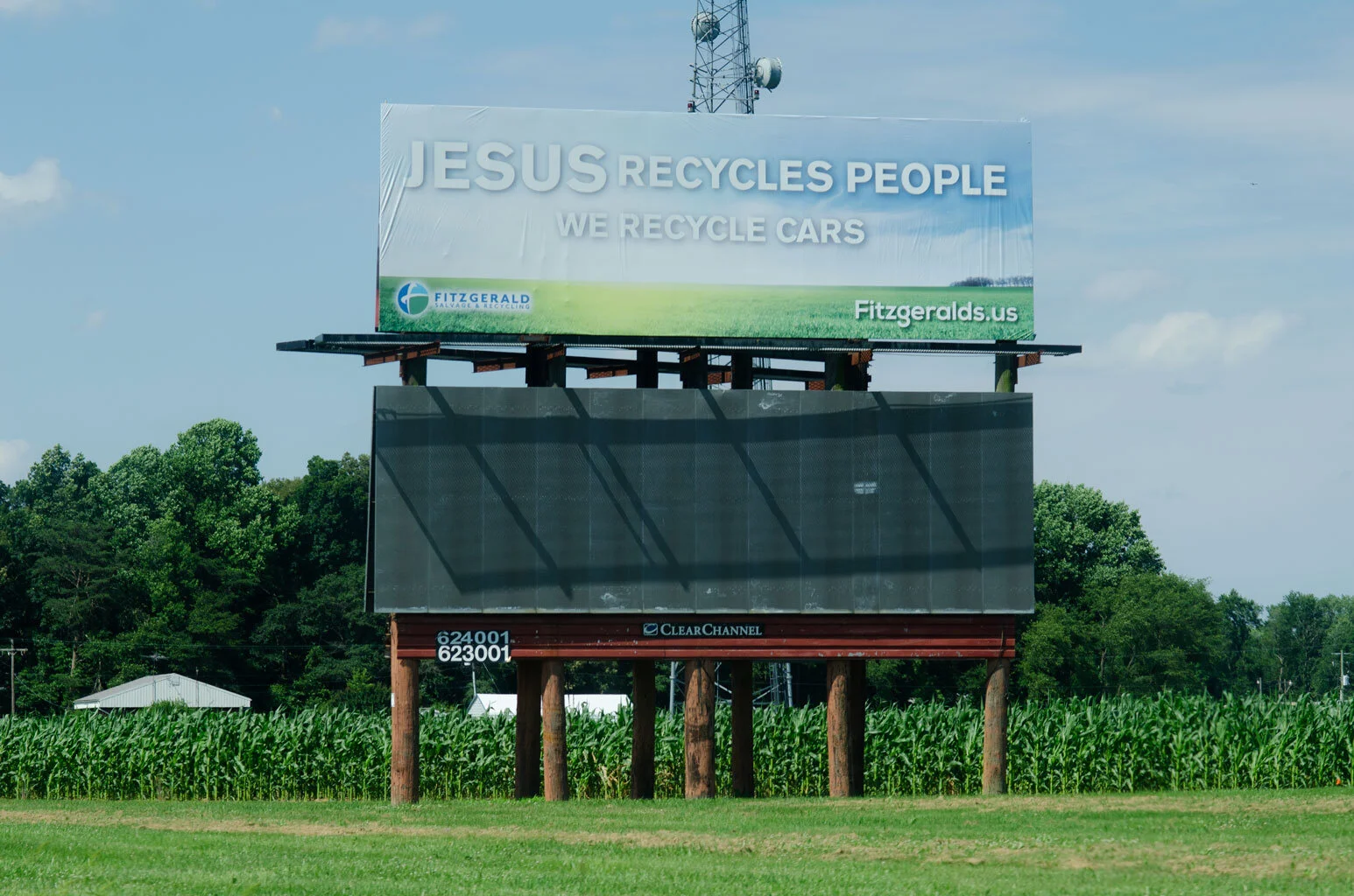 Visual bookmarks of the language of commerce and advertising as it intersects with the spiritual and moral insecurities of the United States.
